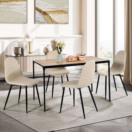 Modern Scandinavian dining chairs with khaki tweed upholstery and sturdy metal legs — available for pickup in Richmond Hill. Homy Casa Canada brings soft comfort and timeless design perfect for GTA homes, apartments, and condos.