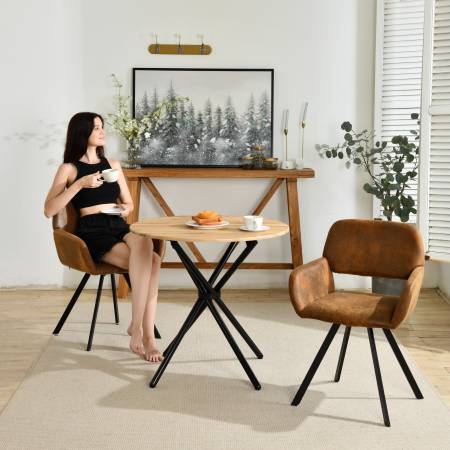 Inspired by California interiors, this chair pairs vintage brown suede fabric with a sleek black powder-coated metal base, creating a cozy yet contemporary look. Perfect for relaxed dining, working from home, or entertaining friends—comfort meets timeless design.