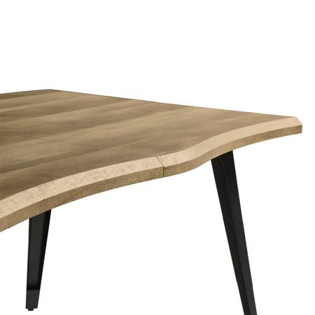 Modern wooden dining table with live-edge oak grain top and black steel legs, perfect for kitchens, dining rooms, or workspaces across the Toronto GTA. Available for local pickup in Richmond Hill from Homy Casa Canada. A clean, contemporary look meets everyday practicality.