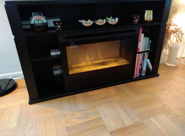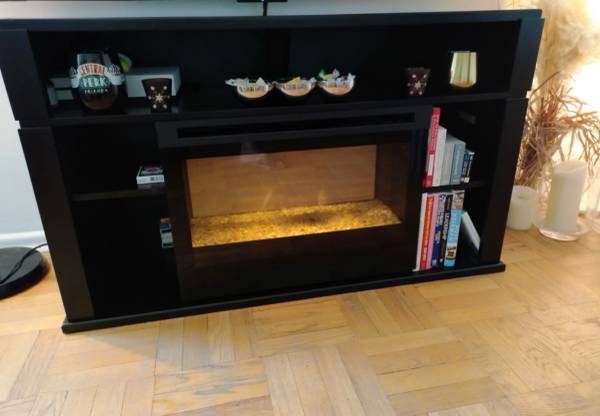 Selling tv stand with electric fireplace in good condition Asking 160$
