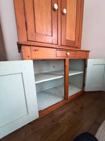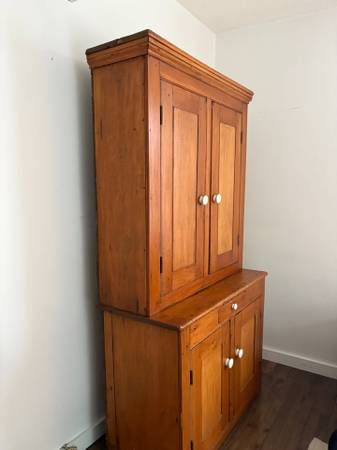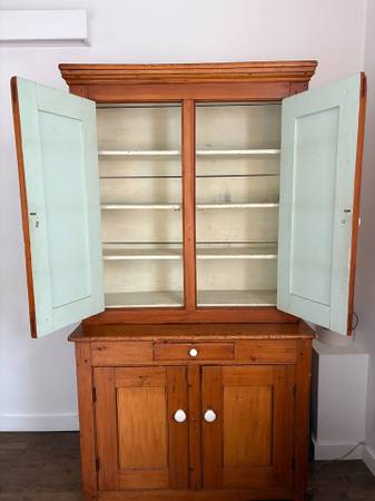 Antique Petite Riviere Pine 2 Piece Cupboard. Vintage from the 19th century Two pieces, top lifts off. 78' 48' 20'