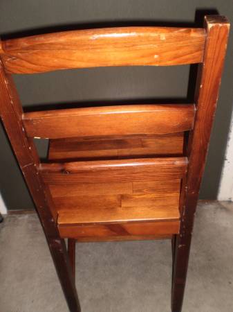 Wood Chair 35in to top, 17.5in to seat good condition $15