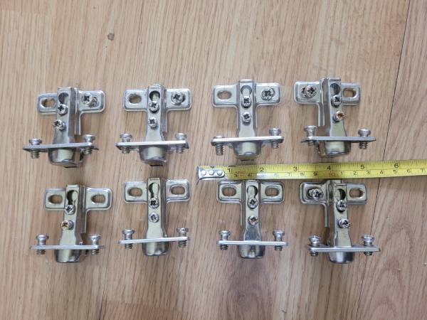 25 pieces of cabinet door hinges. Clip-on plate for easy installation, Silent, Frameless European Concealed Hinges for Kitchen Cabinet Door, Wardrobes, and Bookcases. $10 for the box of 25.
