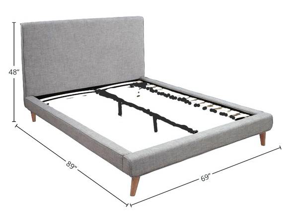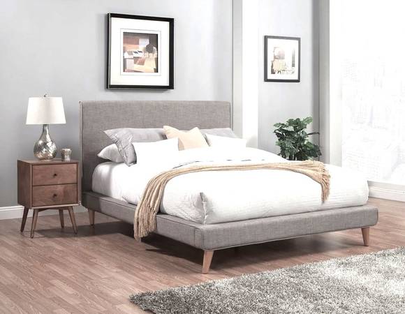 Grey Linen Upholstered Platform Bed Frame - Queen size.