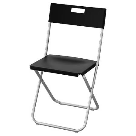 Ikea Gunde folding chairs. UPDATE1 available. Foldable, yet safe. It’s sturdy enough to hold 220 pounds. Very light. Fits in tight spaces when folded!
