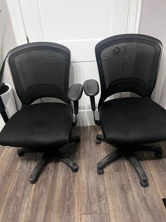 Price is firm Selling 2 black mesh office/ desk chairs. It's in good condition and ready for a new home! Chair /seat height and arm rests are adjustable. Pick up only. Closest intersection is Jane...