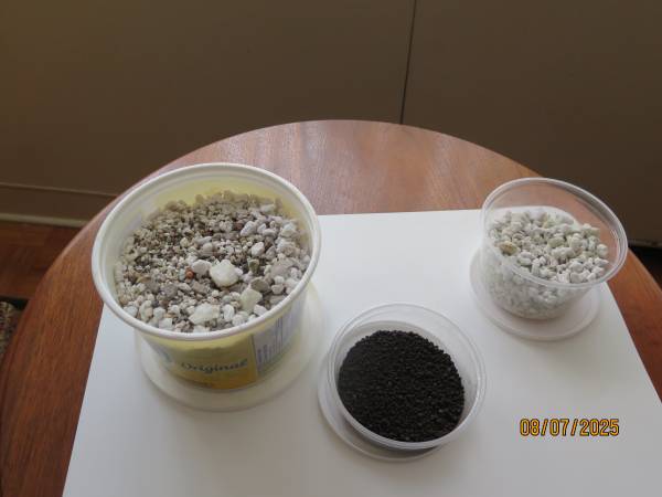 The medium in the largest container is chunky and contains some small stones - $5 The other white medium is light and airy. $4