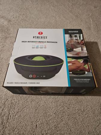 Homedics High-Intensity Muscle Massager with Heat. New, never used. Includes original box, charger and manual. Goes for $120 +tax retail.