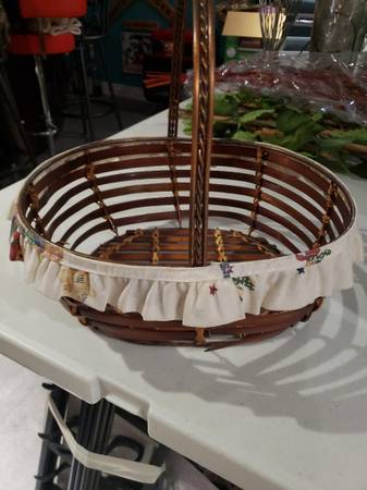 12x11x12”h solid construction basket. Decorative fabric trim. Decorative handle. Ideal for use as a gift basket or as a decorative item in any room. Excellent condition. Pick up is in the Keele and Wilson area, just north of Keele & 401. Thanks for viewing.