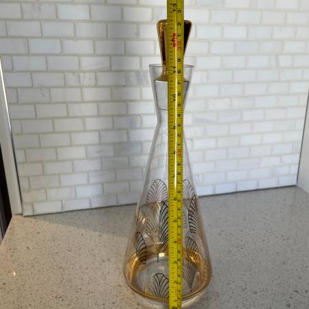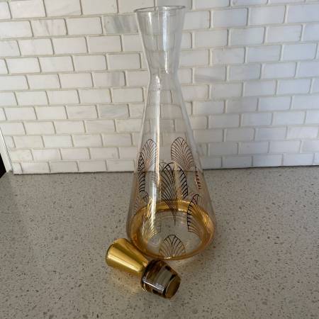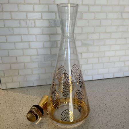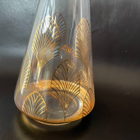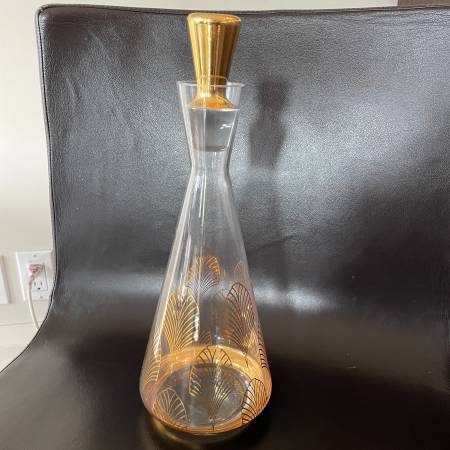 Selling a gorgeous Art Deco Style Glass Decanter with Gold Leaf and Glass Stopper. Gently used in pristine condition. Really pretty.