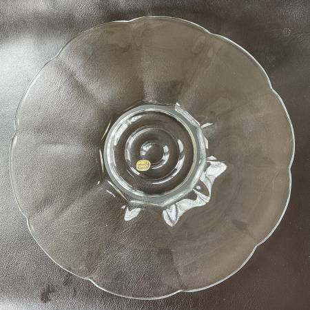 Selling 2 stunning vintage Bohemia Crystal Glass plate platters serving dishes from Czechoslovakia with slightly scalloped edges. They are pre-1993 because Czechoslovakia didn't exist as a country after that date. Most likely from the 70s or 80s. These are both unused beautiful smooth glass platter - quite heavy with original labels. Approximately 13" across. Stunning addition to a table and a great gift.