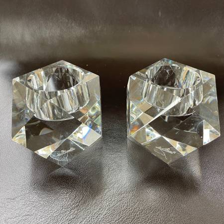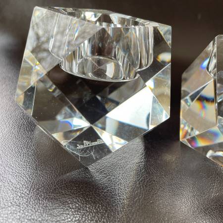 Selling a Pair of gorgeous Rosenthal crystal geometric votive or tealight candleholders from the faceted Carlyle Collection. Made in Germany. Approximately 3"W x 3""H. These are quite heavy. Very good condition with a couple of fleabites that are almost invisible and impossible to photograph (I tried). Rosenthal is etched on the bottom. Priced accordingtly.