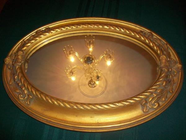 Table Centre, old, hand carved and bought in Italy with mirror, new, 2 1/2” H x 18” W x 26”L, can alternatively be hung on a wall, $180.