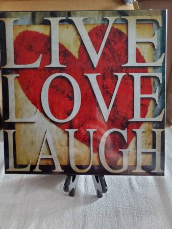 Wall decor: A new metal sign - "Live, Laugh, Love" . New, still in box. $5.00, pick up only