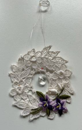The wreath would also hang in a window as a sun catcher. One of a kind. ($8)