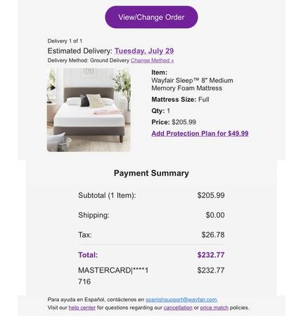 Product description: https://www.wayfair.ca/bed-bath/pdp/wayfair-sleep-8-medium-memory-foam-mattress-c005739448.html?piid=381802876