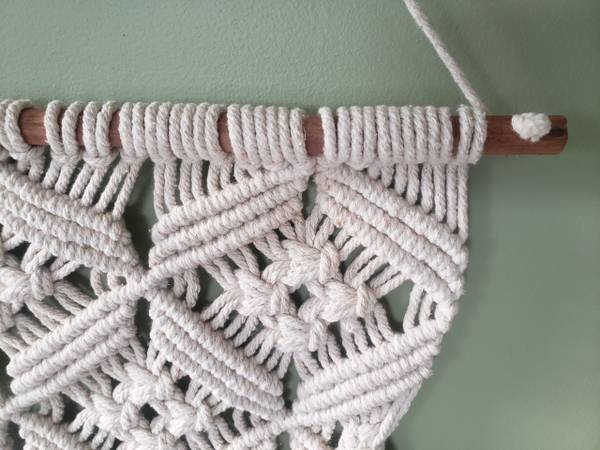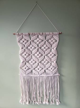 macramé tapestry on wooden dowel 43 x 19 inches Condition: Excellent clean, smoke & pet free home