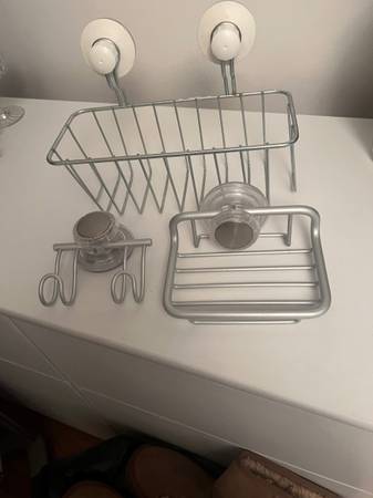 Suction cup bathroom organizers - three (3). Basket, soap, dish, and hook rack. Like new condition. Asking price: $20.00 for three Must be able to pick up in the Jarvis and Wellesley area.