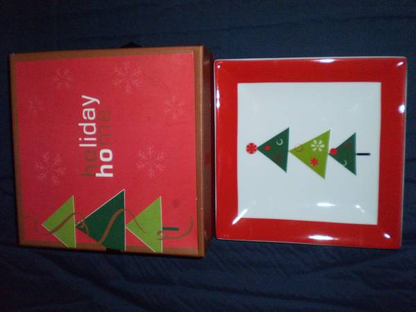 Christmas Holiday Porcelain Plates, Hudson Bay Boxed 4 Square Plates, 8x8in Dishwasher and Microwave safe $15 with FREE BONUS Monarch Square #9591 Fine Porcelain Cook Container, NEW...