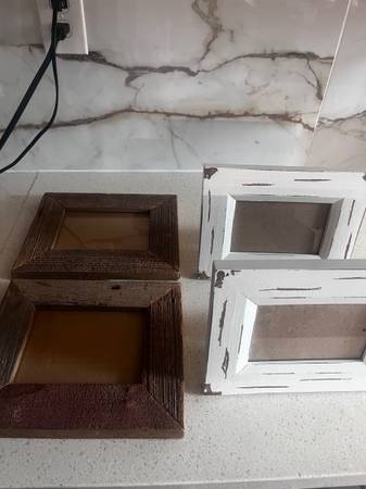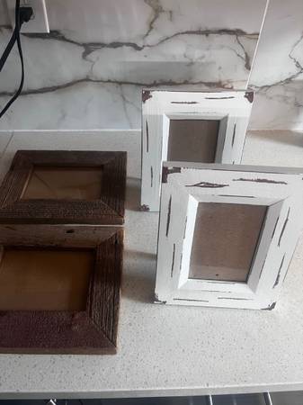 Selling a set of four rustic picture frames! Two are a darker wood tone and two are painted white with a distressed look. They're perfect for adding a touch of farmhouse charm to any room. Great for displaying your favourite memories.