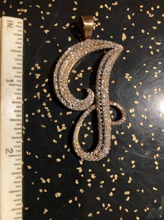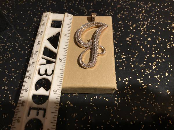 J pendant custom made 209 claw set round diamonds weight of diamonds 2.32 ct j pendant weight 12.40 grms.