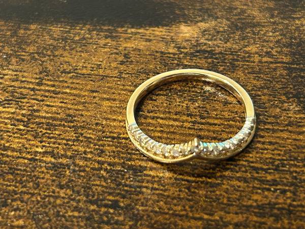 0.18 Carat TW Diamond Chevron Wedding Ring in 14kt Yellow Gold. Retails for $1299 + HST, asking $1000. Size is O which is equivalent to 7.25. Easy to get re-sized.