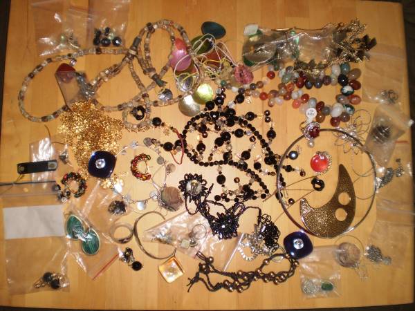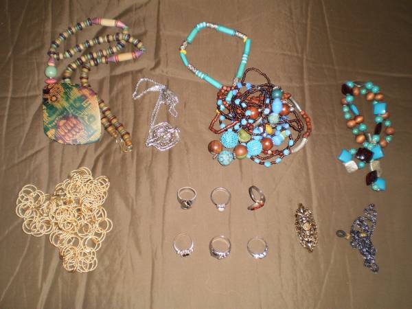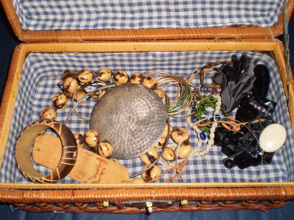 Necklaces, Brooches, Rings, in Wicker Storage Box W FREE BONUS - $50