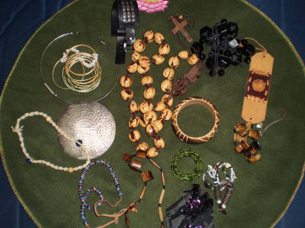 Necklaces, Brooches, Rings, Bracelets in Wicker Storage Box