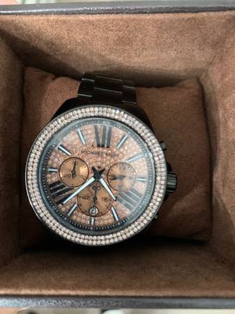 Everest chronograph black plates stainless steel silver with gold tone pink face plate. Will require battery.
