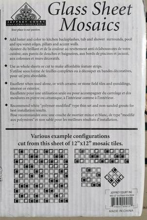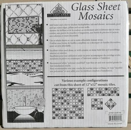 Add a touch of elegance to your next project with these Jeffrey Court Glass Sheet Mosaics. Each sheet measures 12"x12", and I have 8 sheets available, perfect for kitchen backsplashes, tub surrounds, or accent walls. They are new in the original packaging.