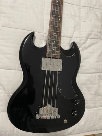 Electric Bass Guitar for Sale. It’s an Epiphone SG by Gibson. In good condition, Great Quality and Sound. Message me if interested.