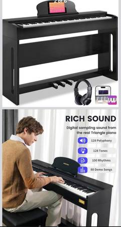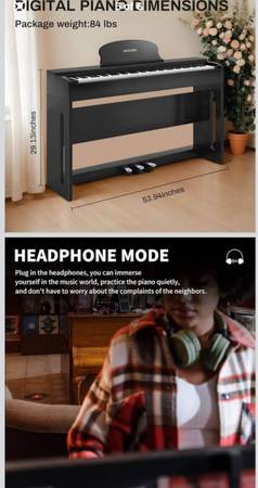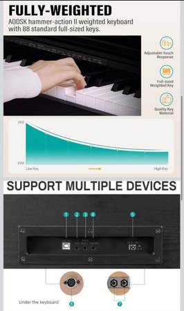 AODSK 88-Key Weighted Digital Piano Hammer action keys with built-in speakers, stand, and triple pedals. Includes beginner’s course. Brand new! 📍Pickup in Richmond Hill 💰Original price: $1104 + tax...