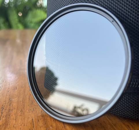 This polarizing filter comes in a plastic protector case, thin enough to easily fit in a camera kit bag.