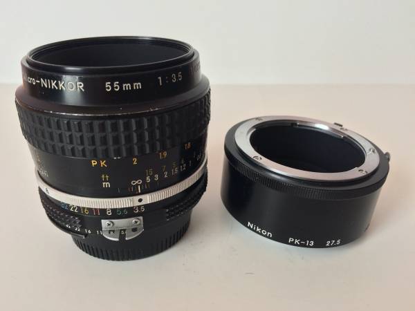 Nikon micro 55mm, f3.5, PK-13 extension ring AI 1:1 included. Len is manual focus, AI mount, can be used on any Nikon D-SLR. In good condition, no haze, no fungus. Serious reply only, please text .