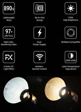 accessories. Can be run on standard AC or 2 x Sony NP-F970 style