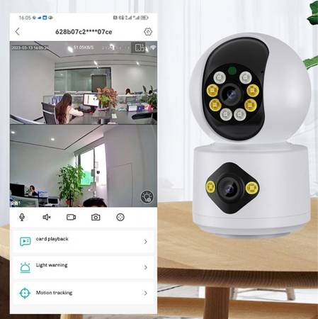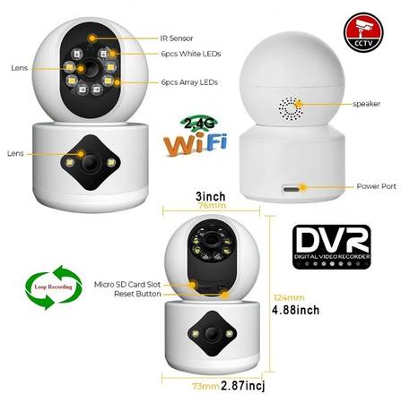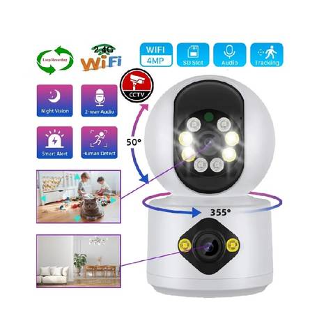 Brand new 4MP Dual Lens Security WiFi DVR Camera with live view, Night Vision and Pan/Tilt.