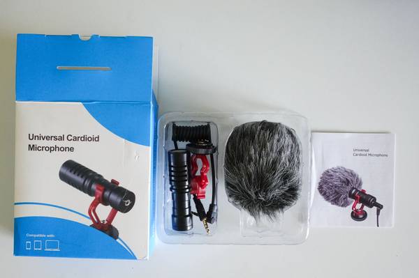 A new or like new universal microphone for smartphones, tablets, dslr cameras, camcorders, audio recorders etc.. Compact and light weight directional mic No battery required Furry windshield...