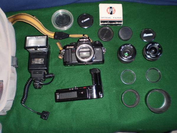 Canon and Minolta 35mm SLR, Camera Bag with Accessories - $50