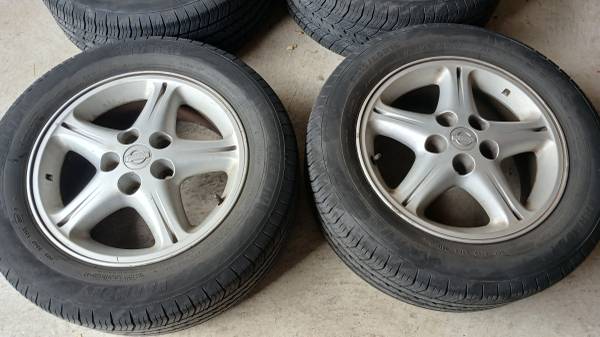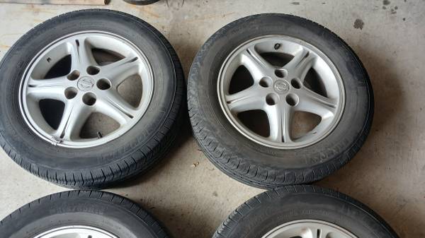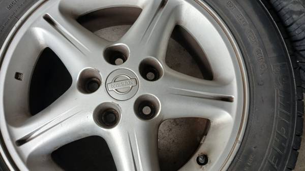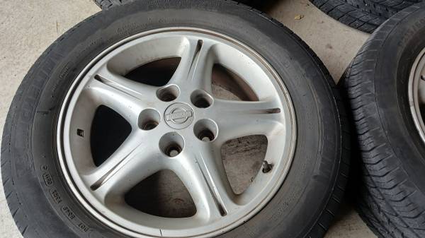 Set of 4 Nissan Rims Used in a Nissan Maxima 2002 Great winter Rims -- 114.3 x 5 bolt pattern --66.1mm Hub bore Michelin Harmony All Season -- DOT 0611 -- Good Tread - Good Condition - NO...