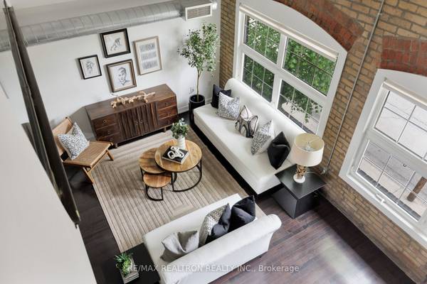 Welcome to the Historic Foundry Lofts! This stunning two-storey, two-bedroom, two-bath residence is flooded with natural light and brimming with character. Set within the historic Foundry building, this sun-drenched unit features soaring ceilings, grand archways, and original exposed brickwork that lend a dramatic and unique charm to the living space. Freshly painted and move-in ready, the open-concept main floor boasts rich hardwood floors, a beautifully renovated kitchen with granite countertops, custom cabinetry, and a breakfast island, perfect for everyday living and entertaining alike. The spacious living and dining areas are framed by oversized windows that showcase the buildings industrial heritage. A powder room and in-suite laundry are conveniently located on the main level. Upstairs, you'll find two generously sized bedrooms and a modern four-piece bathroom. The second bedroom features a vaulted ceiling, adding architectural interest and an airy, open feel. One underground parking space and one locker are included, with ample indoor visitor parking available. Residents enjoy access to an incredible 6,000 sq. ft. indoor atrium-style courtyard with Wi-Fi and lounge seating, along with a full suite of amenities including a gym, party room, conference room, and movie theatre. Located in a thriving neighbourhood, you're just steps to Geary Avenue, The Junction, and St. Clair West. Enjoy the convenience of Balzacs Coffee, Cheffreys Restaurant, Aisle 24, and nearby grocery stores, plus excellent schools and public transit right outside your door. Parking and locker included.