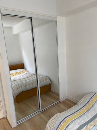 Very bright room and you can see CN Tower from the window. New floor, kitchen appliances, TV, wash machine and dryer!
