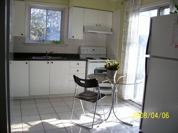 - Large, bright eat-in kitchen, with walkout to yard which backs onto park.