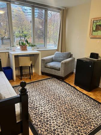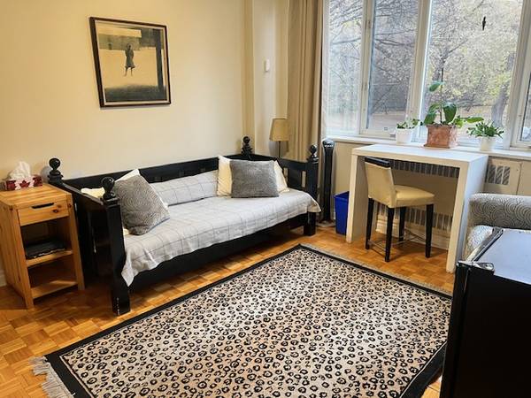 a large, bright and spacious, furnished room (12x12) near the Rosedale and Bloor subway station, overlooking two parks with a view of a lush canopy of trees