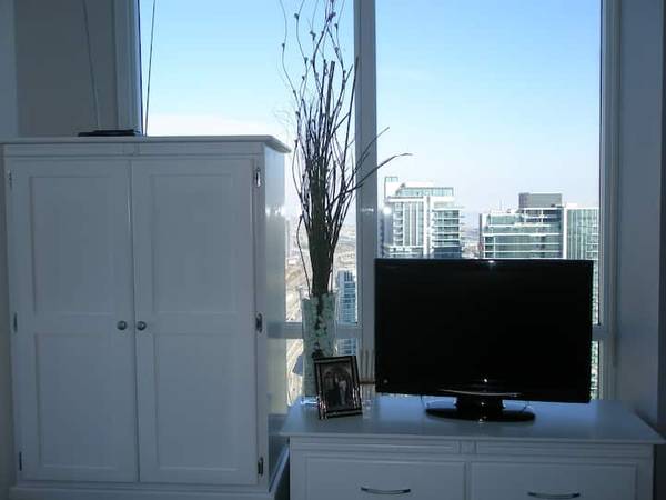 Large Fully Furnished 1 Bedroom in a Luxury Condo Downtown Toronto. Queen Size Bed with an Armoire, Dresser and Night Tables. Desk, Chair and a Computer Monitor. Full Size Stainless Steel Kitchen...