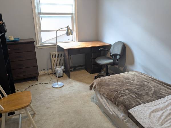 Bright furnished room; centrally located; available in November, 2025. This is a mid-sized room in a large second-floor apartment, which is in a clean well-kept house.