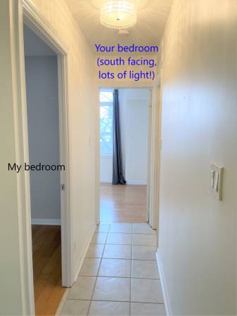 The condo unit has two bedrooms and generous balcony/patio space. You’ll have the larger bedroom which faces south and has plenty of natural light throughout the day (see pictures, shown with and without occupancy / furnishings). You’ll be sharing the living space, kitchen, and bathroom with me. I am an educated professional in my 30s, male, easy-going.