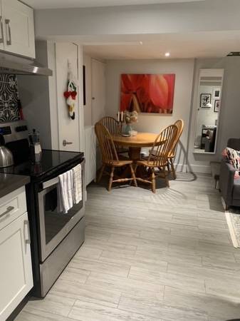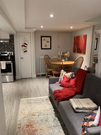 2 bedroom lower level apartment for rent, steps to Little Italy and Dufferin Grove. Private side entrance and bright living space. Hardwood style tile throughout and own thermostat heat control. Custom modern kitchen with stainless steel appliances, quartz counters and unique back splash. Subway tile custom shower with frameless glass and towel warmer.