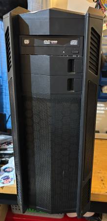 The case is in great condition. There are stickers on both sides of the case. There are 2 x USB 3 ports and 4 x USB 2.0 ports on the top of the case as well as a STA connector for SATA hard drives. There are 5 x 180mm case fans and a DVD-RW multi-recorder optical drive installed. See below for details.