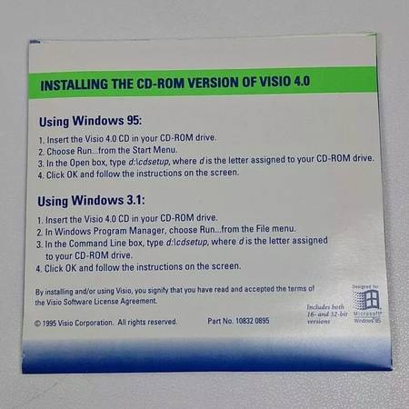Visio Version 4 CD-ROM for Windows 95 and 3.1 16 and 32-bit Versions $10 Pickup ONLY