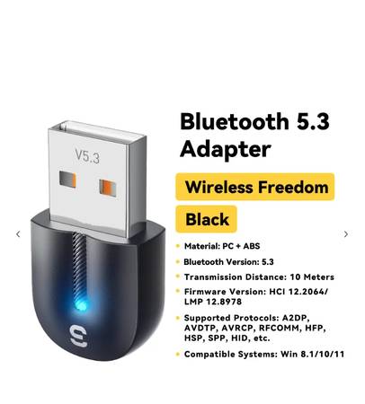 Essager USB Bluetooth Adapter Dongle Bluetooth 5.3 for PC Laptop Essager Plug-and Play for Wireless Experience Wireless Adapter 1. Supports simultaneous connection of 2 devices, including Bluetooth...